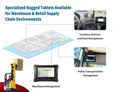 The rugged tablets from Waysion allow you to streamline your entire supply chain operation from receiving parts and tracking them through manufacturing, to the warehouse and finally to the customer. Tablets support ERP and warehouse management systems and can be mounted directly to the support for below applications:
