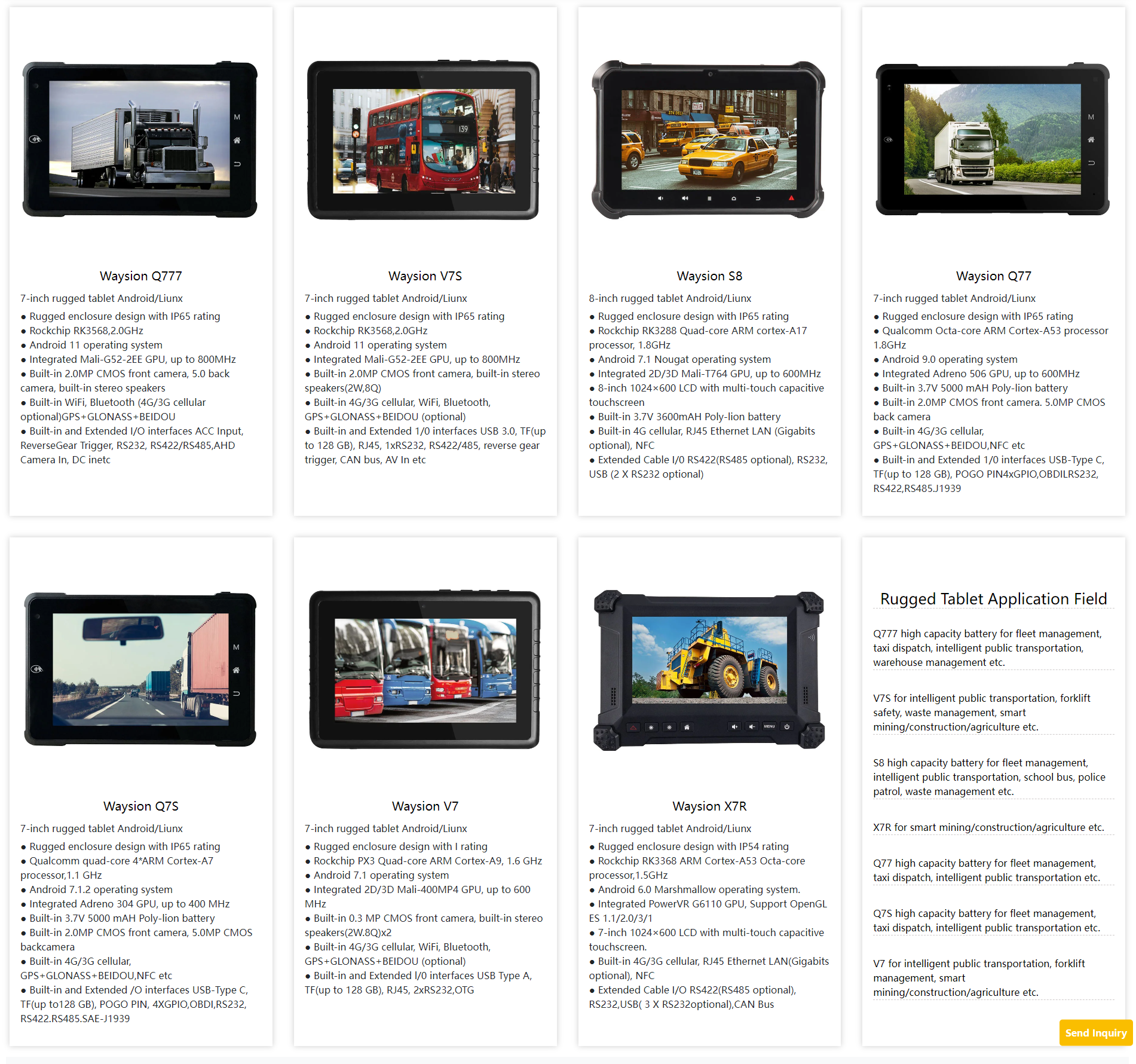 Waysion Technology are professional in helping clients with up-to-date ARM CPU Solutions and Embedded System Services. Based on well-designed Android/Linux tablet devices and related integration, we helping many customers achieved smart mobility and high efficiency in their Industry IoT/ Agriculture/ Fleet Management/ Vehicle Navigation and Display/ Taxi Dispatching. Contact us for product demo and more possibilities